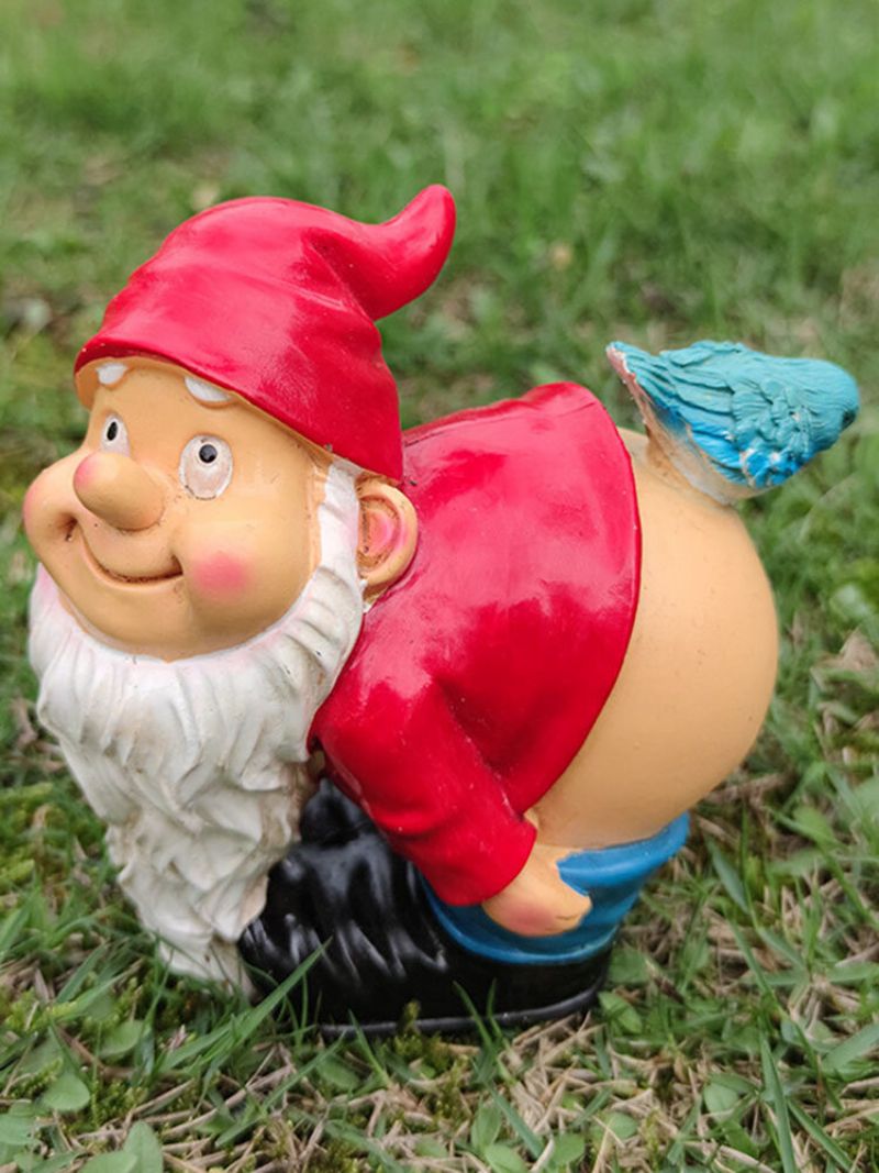 1 Stk Harpiks Gnome Dverg Flirting Hvitt Skjegg Statuer Bøyd Over For Å Avsløre Rumpa Fugl Plen Dekorasjoner Innendørs Utendørs Julehage Ornament