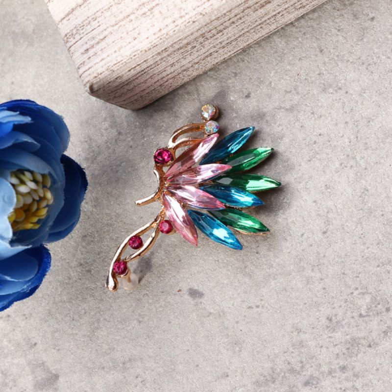 1 Stk Luksus Krystall Rhinestones Fjær Sommerfugl Mansjett Øredobber Klips Stud For Kvinner Gave