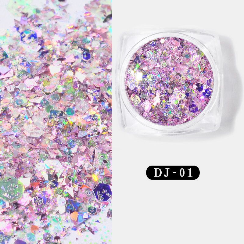 12 Farger Skinnende Lys Løk Pulver Ultra-tynne Negle Glitter Paljetter Fargerike Uregelmessige 3d Skiver