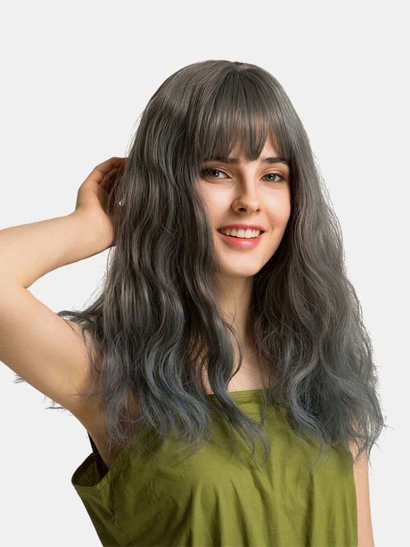 20 Tommers Naturlige Bølgete Parykker Langt Syntetisk Hår Gradient Blandede Farger Neat Bangs