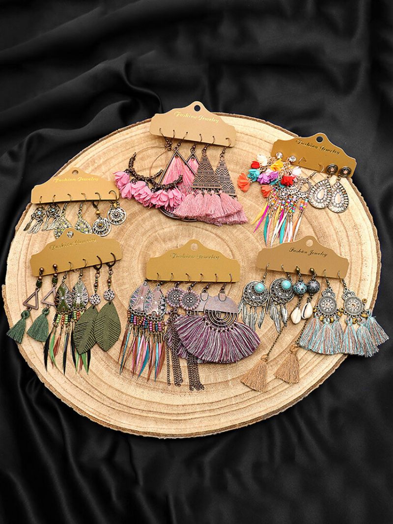 3 Stk Vintage Uregelmessige Øredobber For Kvinner I Dråpeform Med Hule Blomster Håndvevde Dusk