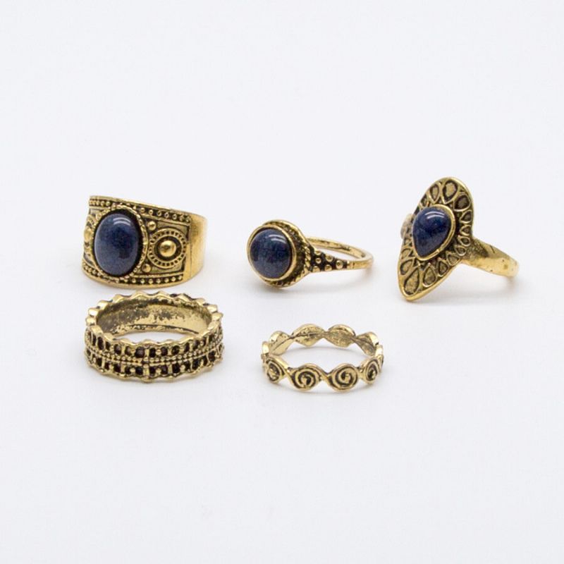 5 Stk Bohemian Ring Vintage Turkis Knuckle
