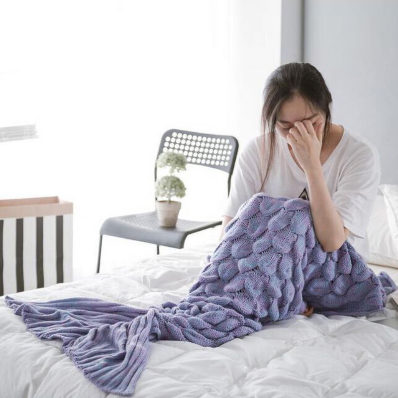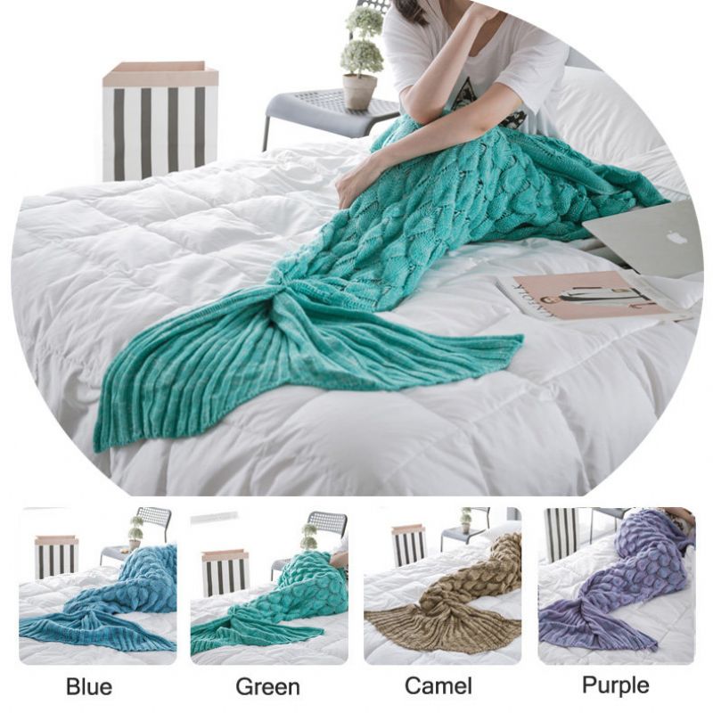 90x190cm Garnstrikking Havfruehaleteppe Fiskevekt Stil Varm Supermyk Sovepose Sengematte