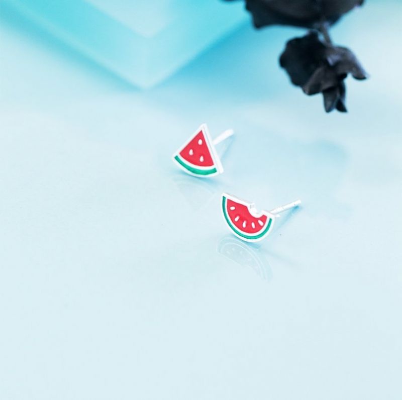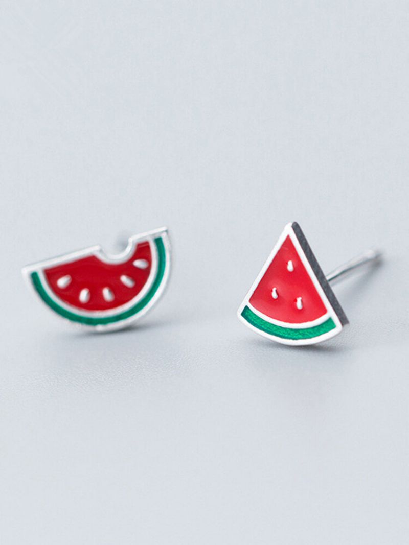 925 Sterling Sølv Ørepynt For Kvinner Søt Vannmelon Frukt Asymmetriske Piercing Øredobber