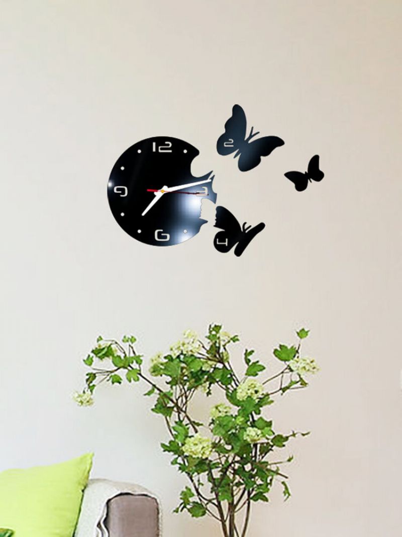 Akryl Speil Klistremerker Veggklokke Moderne Design Fairy Butterfly 3d Diy Duvar Saati Klokker For Jente Gave Stue Hjem Innredning