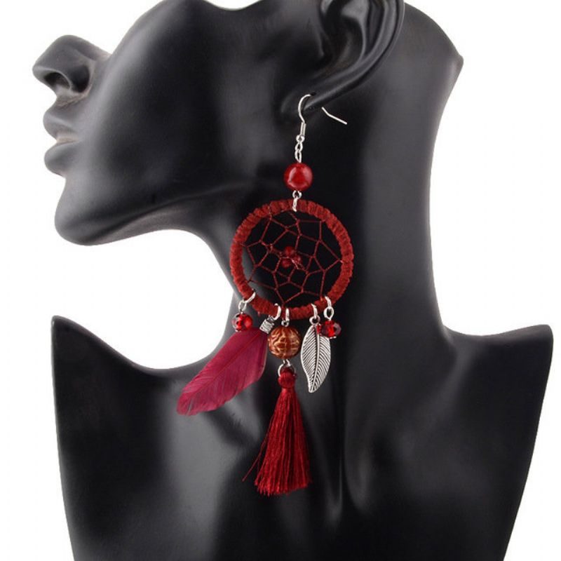 Bohemian Geometrisk Dreamcatcher Anheng Lange Øredobber Metal Feather Dusk Turkise