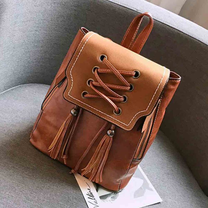 * Vintage Enkel Styling Med Motedetaljer. Bandasjedesign På Klaffen Med Dekorasjon Med To Avtakbare Dusker Foran, Også Moderat I Størrelse.