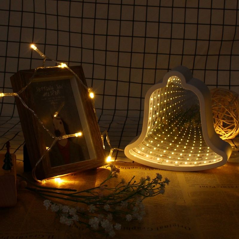 Creative Cute Bell Mirror Lamp Led Tunnel Nattlys For Kid Gift Atmosphere Light White/varm White