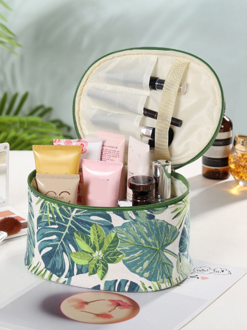 Creative Plant Print Kosmetikkveske Reisevaskepose Oppbevaringsveske I Bomullslerret Stor Kapasitet