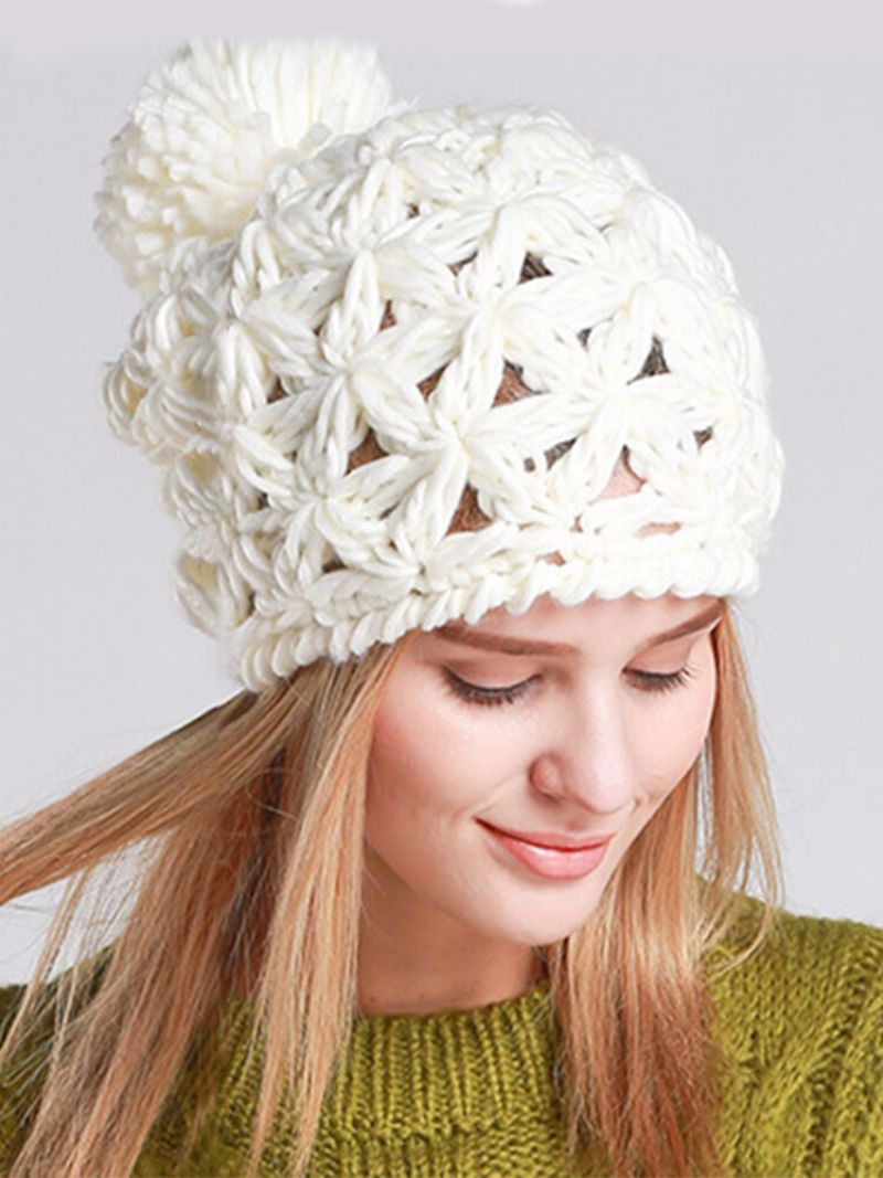 Dame Strikket Lue Hette Lue Håndvevd Hul Ulllue Uformell Utendørs Varm Vindtett Lue