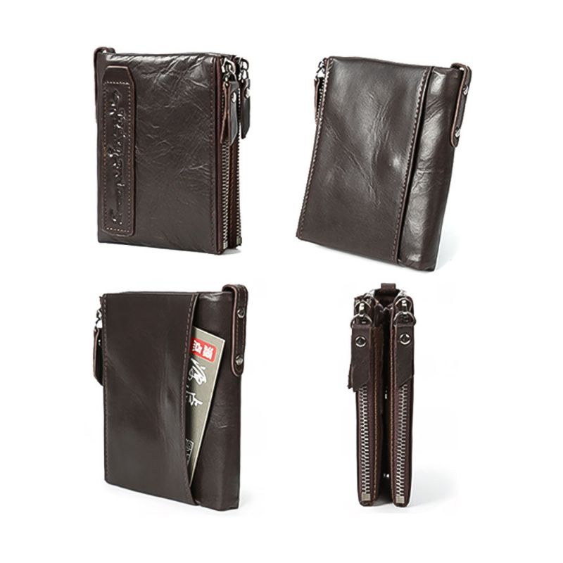 Dobbel Glidelåslommebok Med Flerkorts Førstelags Lærpenger Og Kortholderveske For Menn