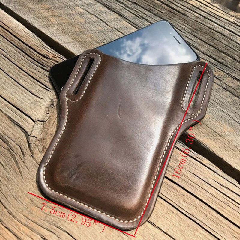 Ekphero Menn Ekte Skinn 7.2 Tommer Edc Retro Kort Mobiltelefonveske Belteveske