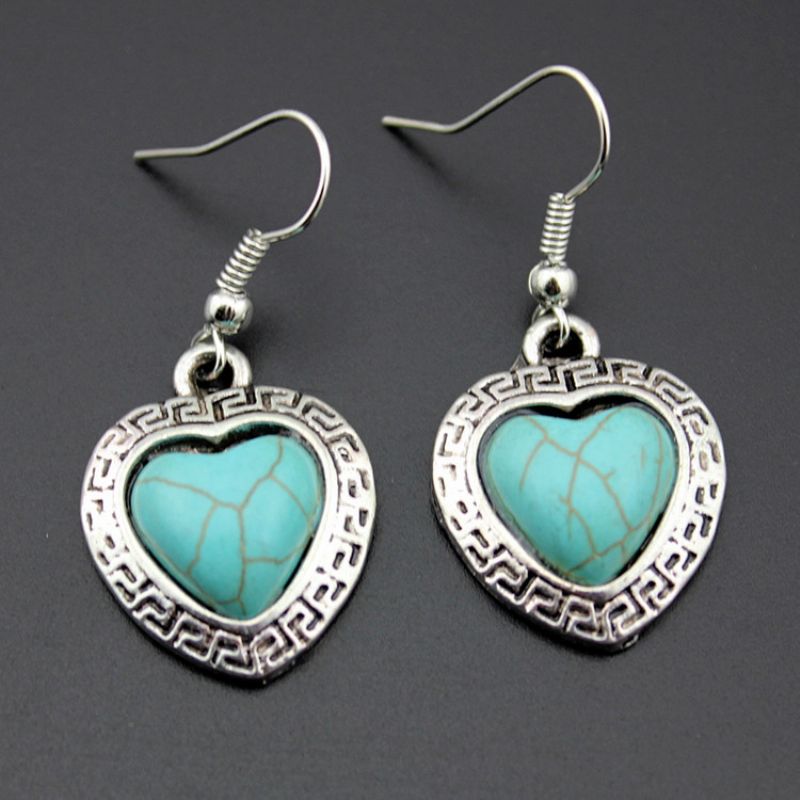 1. Dette Naturlige Turkise Hjerteformede Kjedet Kommer Med Øredobber. Bruker Høykvalitets Legering, Utmerket Utførelse.