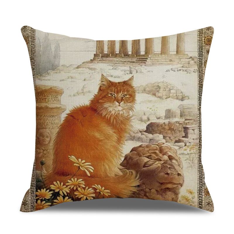 Katter I Retrostil Lin Bomullsputetrekk Hjemmesofa Art Decor Putetrekk