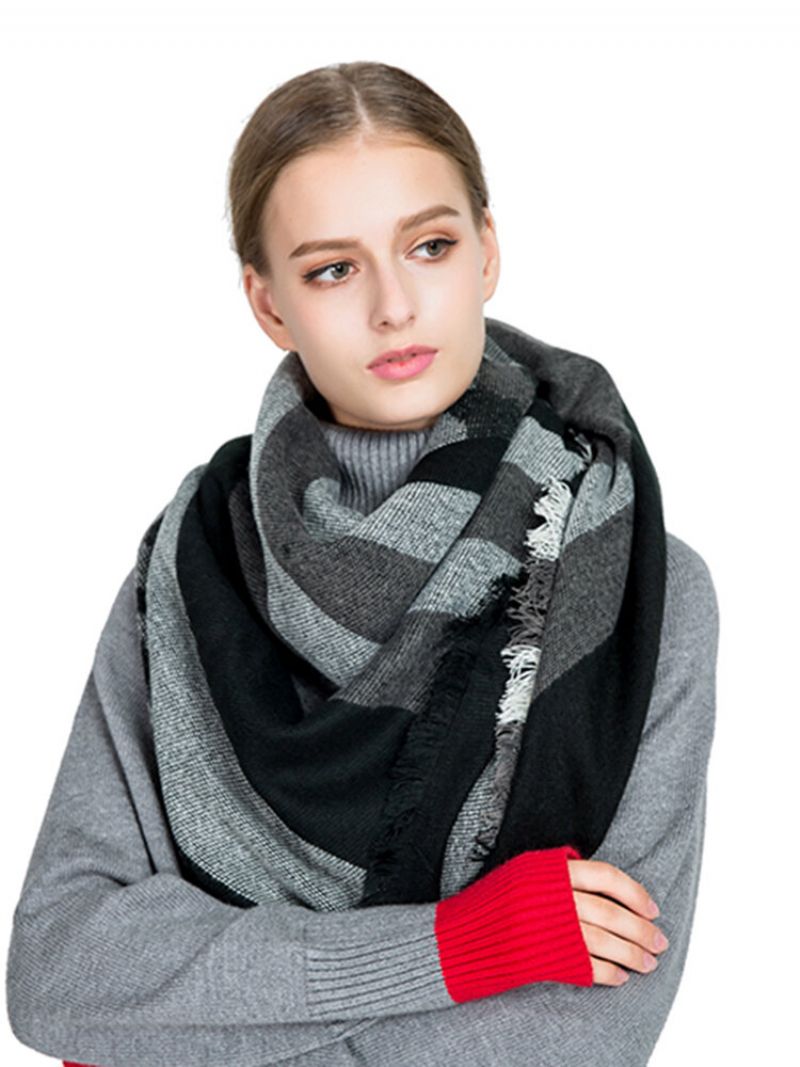Kvinner Langt Vinter Varmt Bomullskjerf Dusk Myk Mote Stripe Sjal Teppe Skjerf