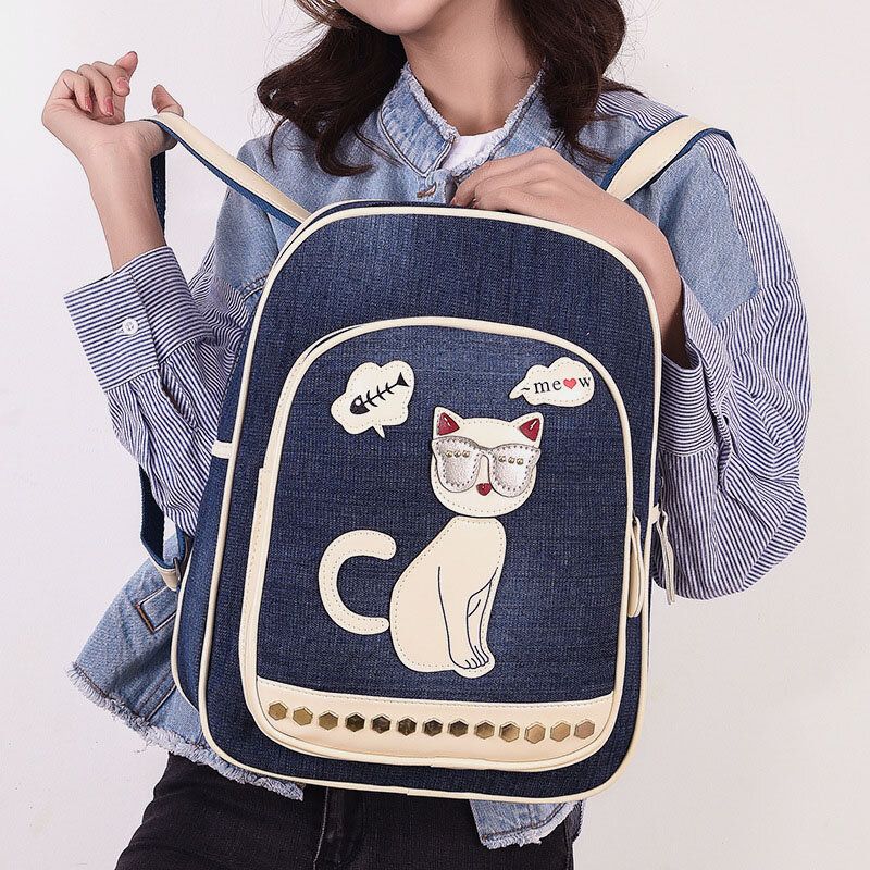 Kvinner Lerret Søt Kattetrykk Patchwork Uformell Ryggsekk Skoleveske