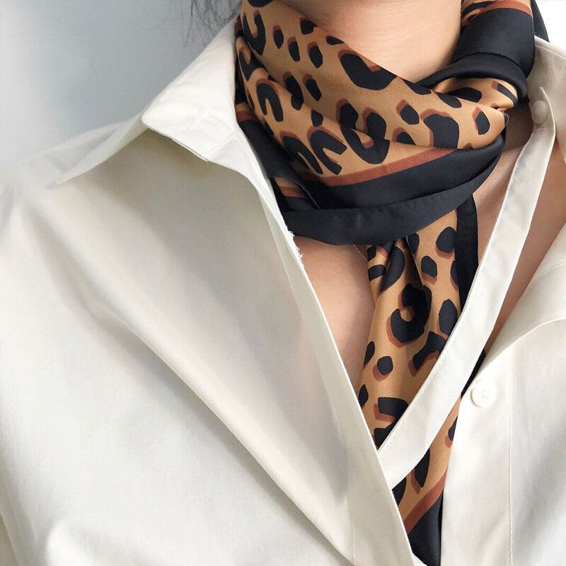 Kvinneskjerf Silkeprodukter Dekorativt Firkantet Skjerf Leopardskjerf
