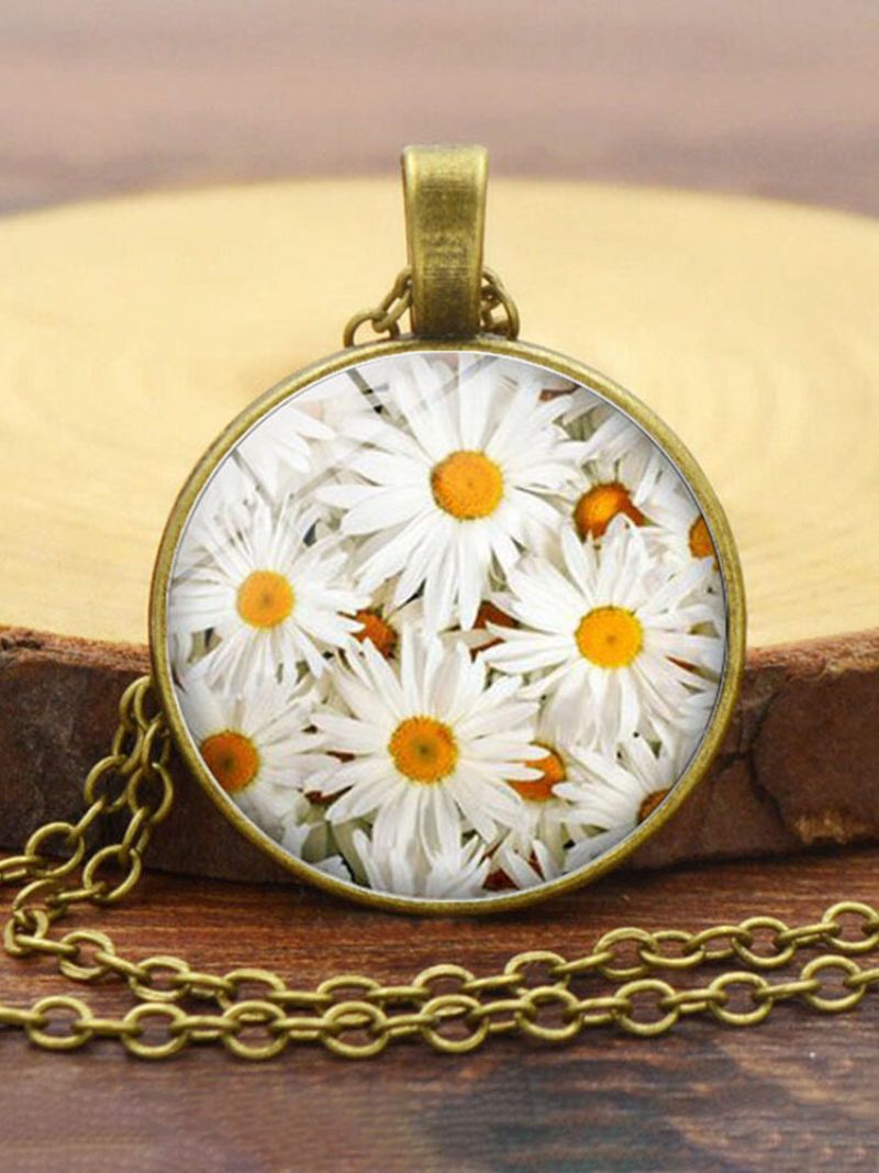 Legering Glass Vintage Daisy Blomstermønster Trykt Lang Genser Kjede
