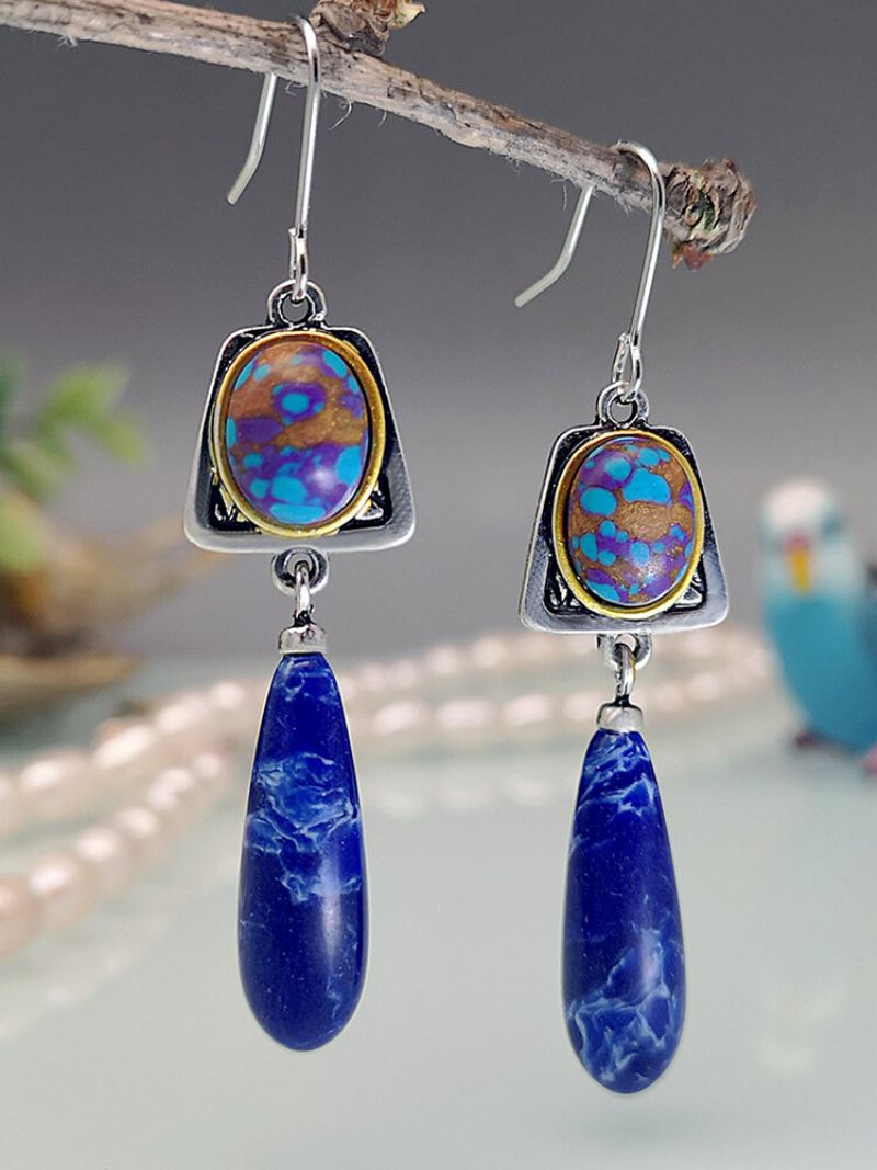 Legering S925 Turkis Bohemian Gemstone Drop Antikke Lapis Lazuli Swing Øredobber