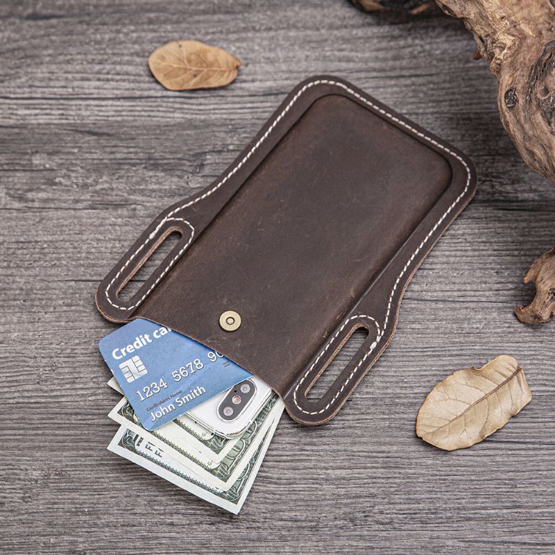 Menn Edc Ekte Skinn 6.3 Tommers Retro Kort Mobilveske Belteveske