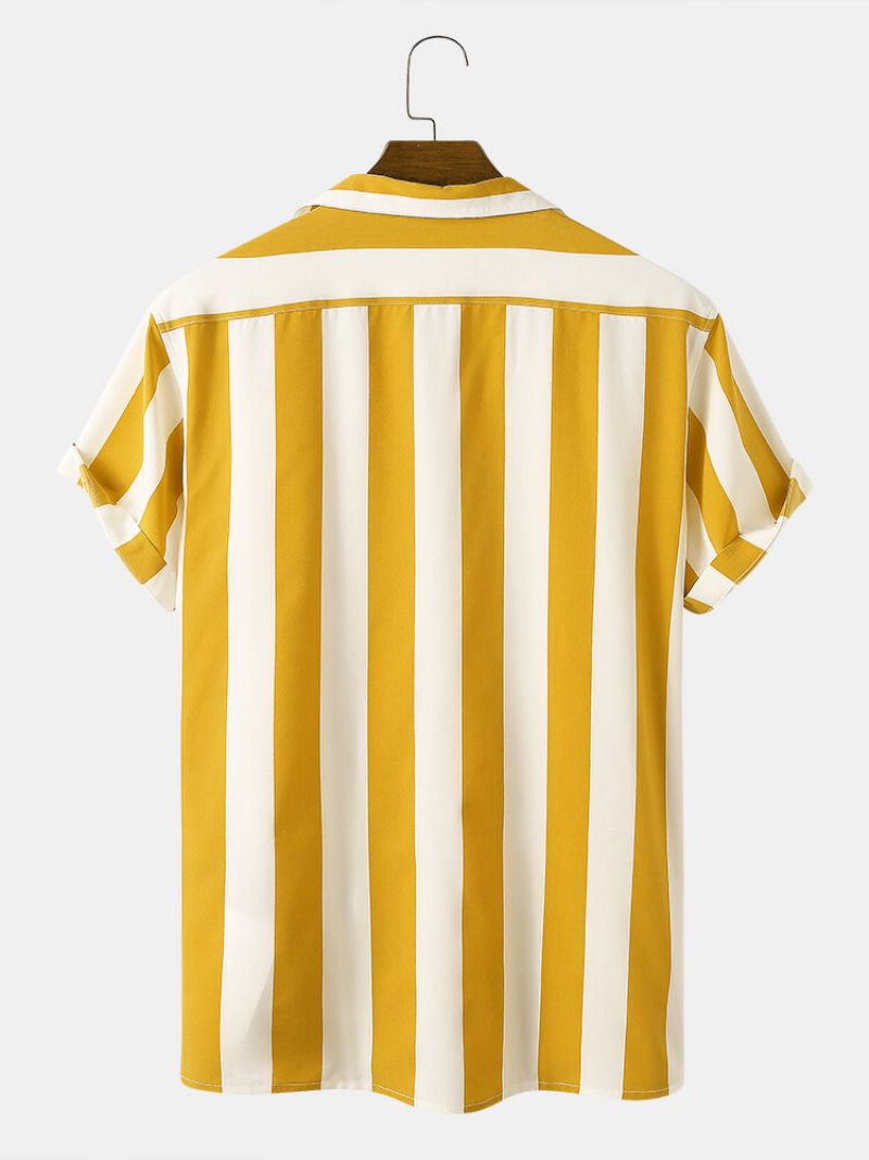 Menn Uformell Stripete Turn-down Krage Kortermet Skjorte