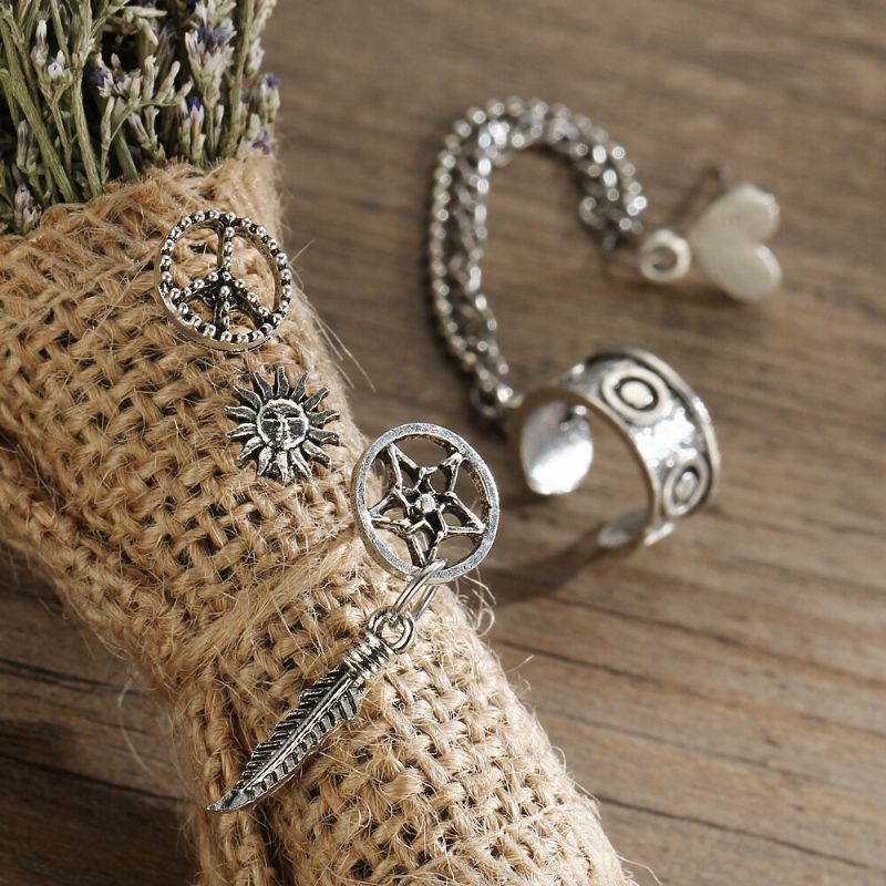 Punk Alloy Peace Symbol Sun Leaf Heart Stud Øredobber 4 Stk/sett For Kvinner