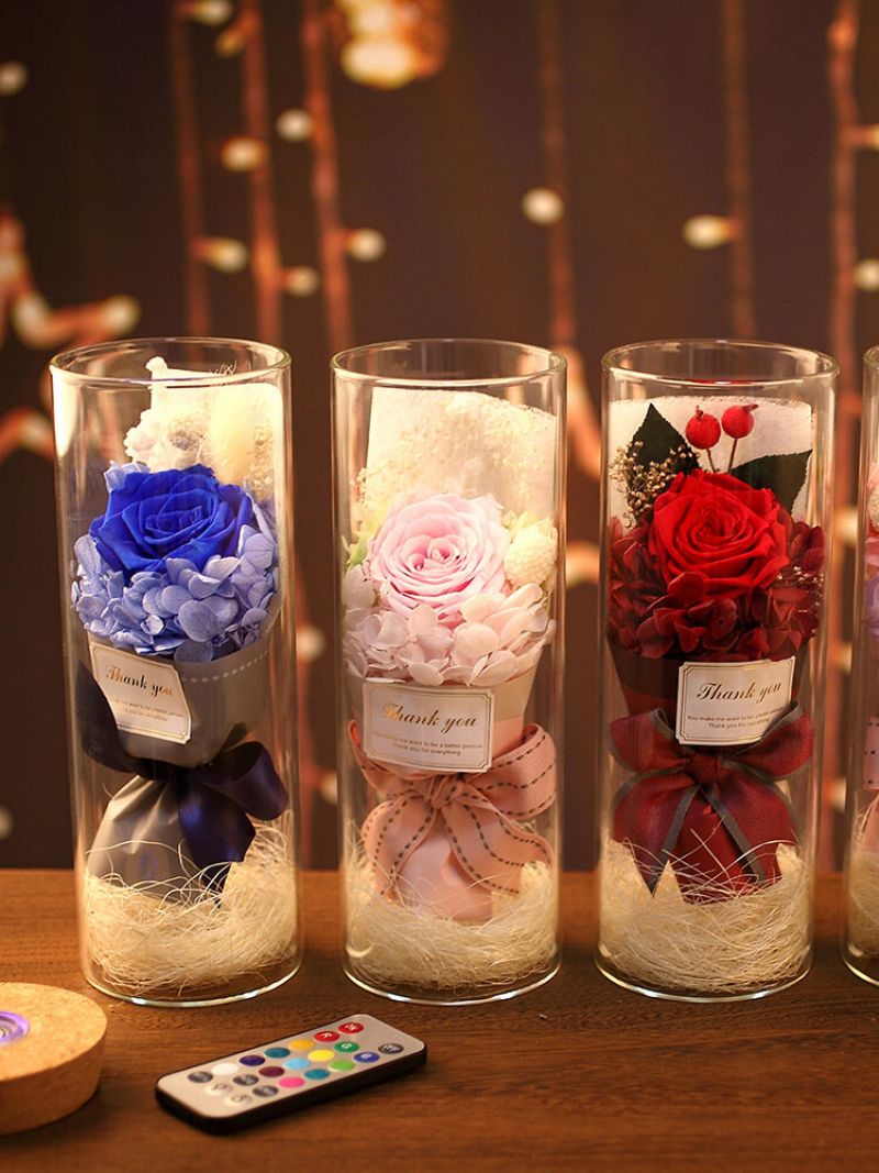 Regnbuerose Nattlys Valentinsdagsgave Romantisk Dekorasjon Lys Tørket Blomst Evig