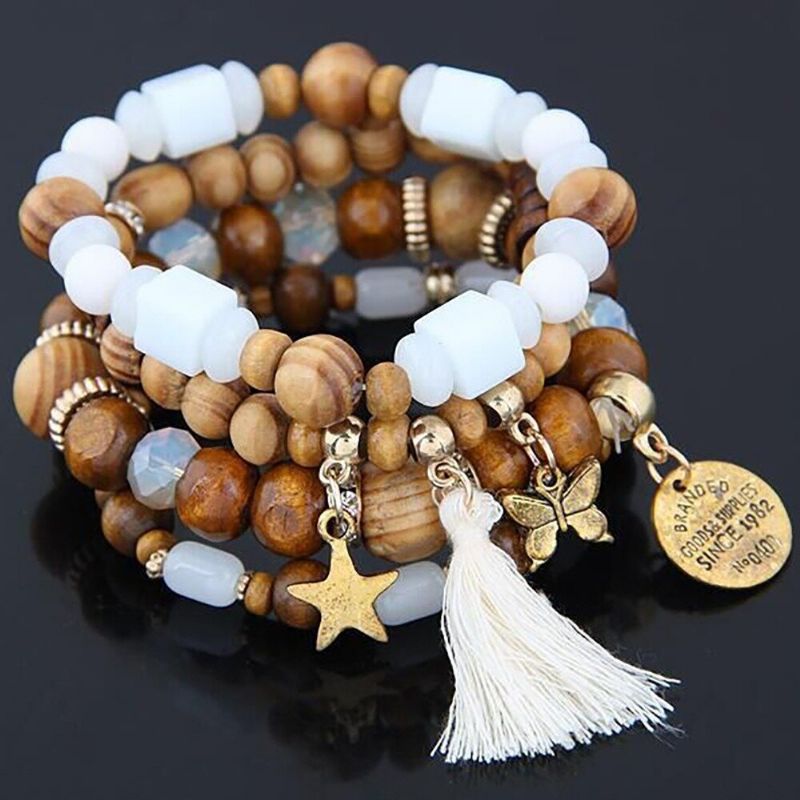Retro Mix Color Beaded Armbånd Bohemian Butterfly Stars Multi Layer For Damer