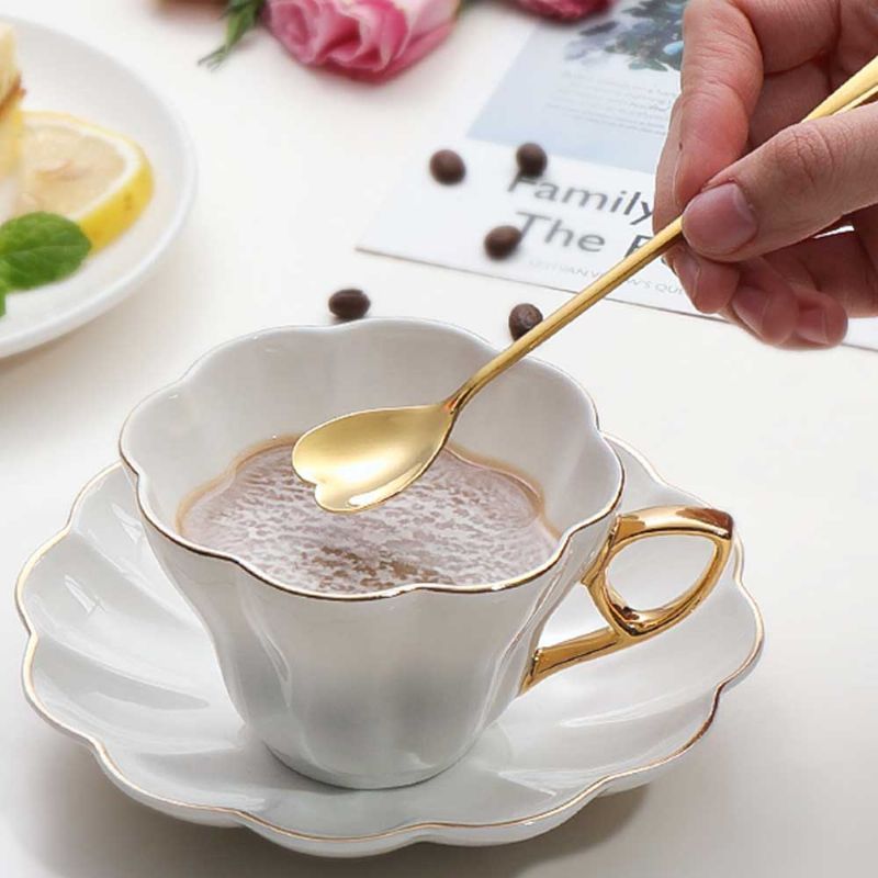 Rustfritt Stål Lang Skaft Skje Japansk Kirsebærblomst Hjerteformet Kjærlig Type Kaffeskje Iskremskje For Omrøring