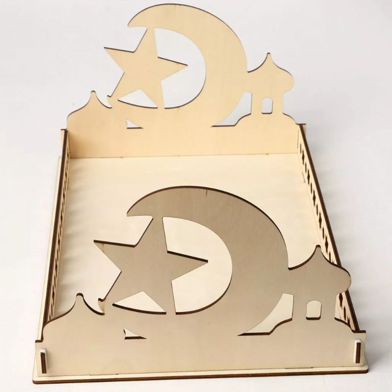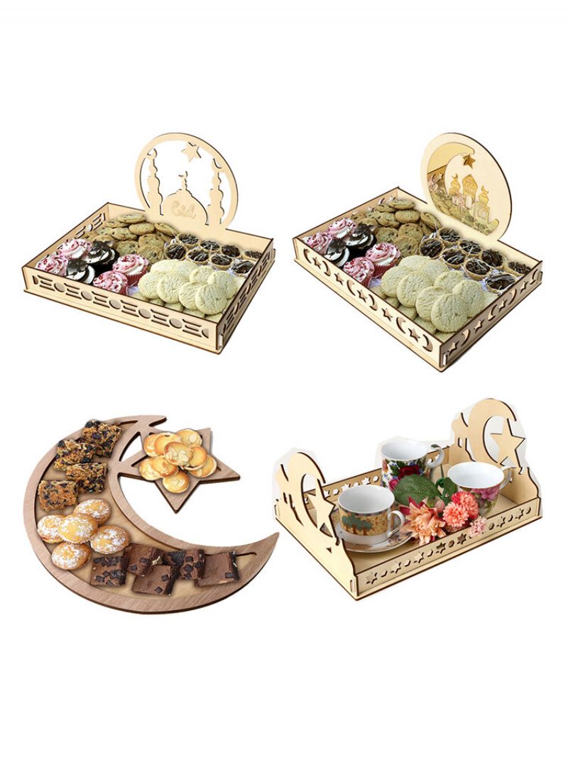 Rustikk Tre Islam Ramadan Mat Serveringsbrett Bakverk Middagstallerken Holder Dekorasjoner
