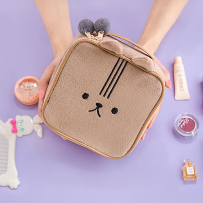 Søt Fuzzy Preget Dyreoppbevaringspose For Kvinner