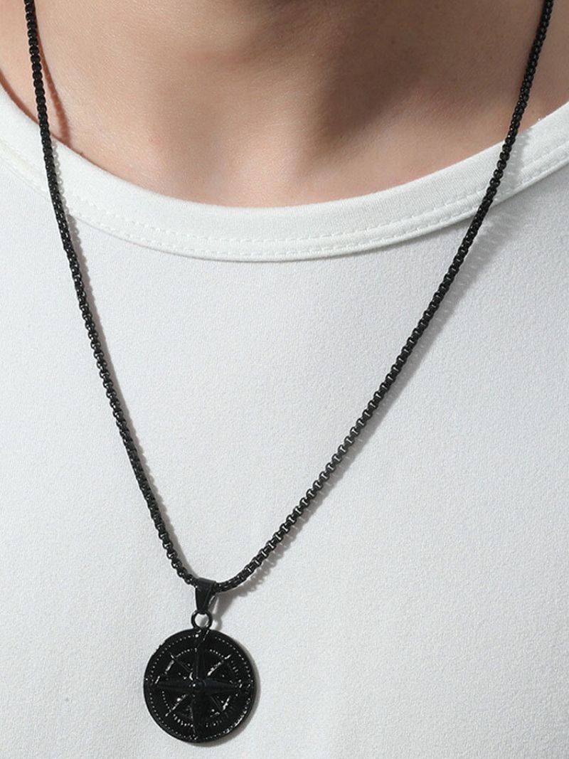 Trendy Punk Personlighet Retro Kompass Titan Stål Legering Anheng Halskjeder