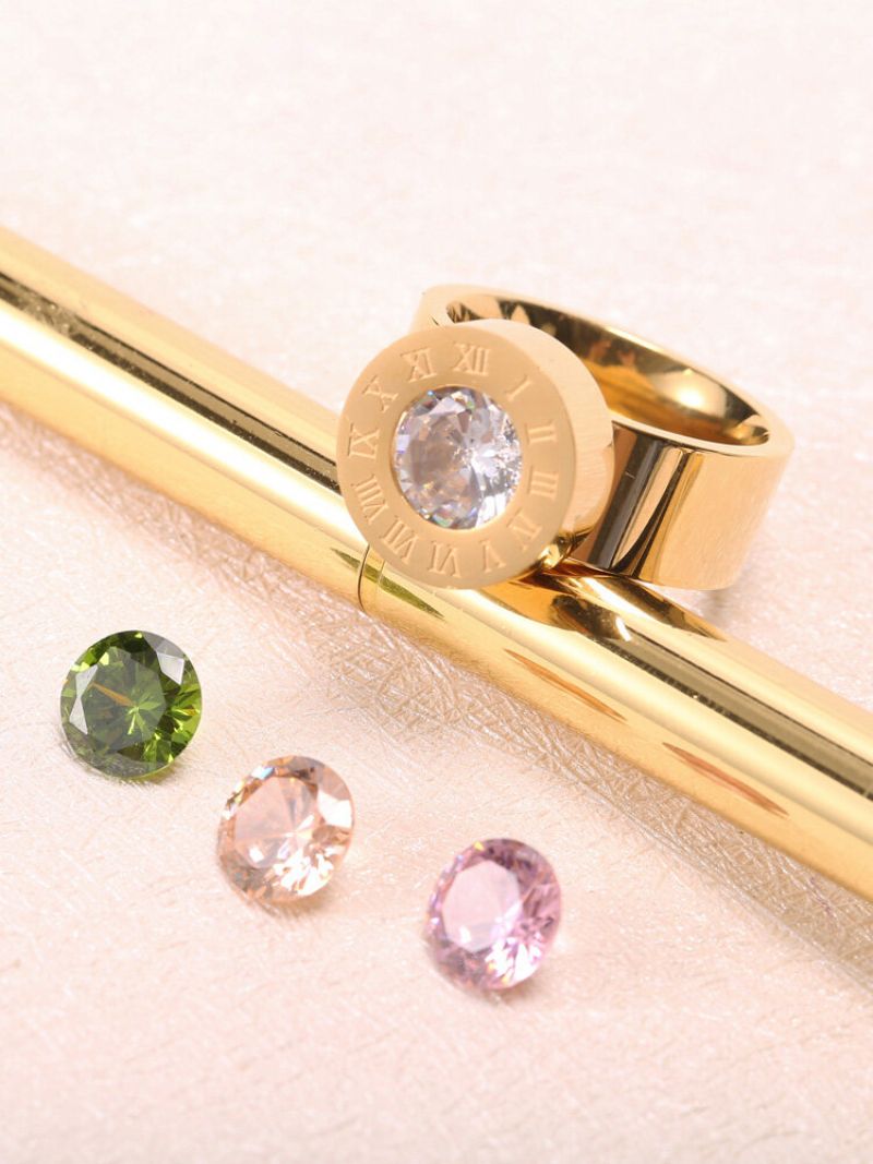 Unik Rustfritt Stål 4 Farger Edelstener Unisex Ring Sølv Rosegull Romertall Forlovelsesring