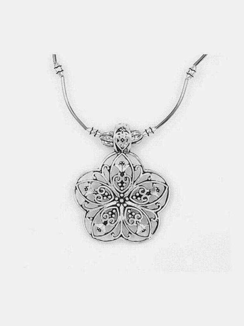 Vintage Antikk Sølv Hulblomst Anheng Halskjede Etnisk Tibetansk Kvinner Genser