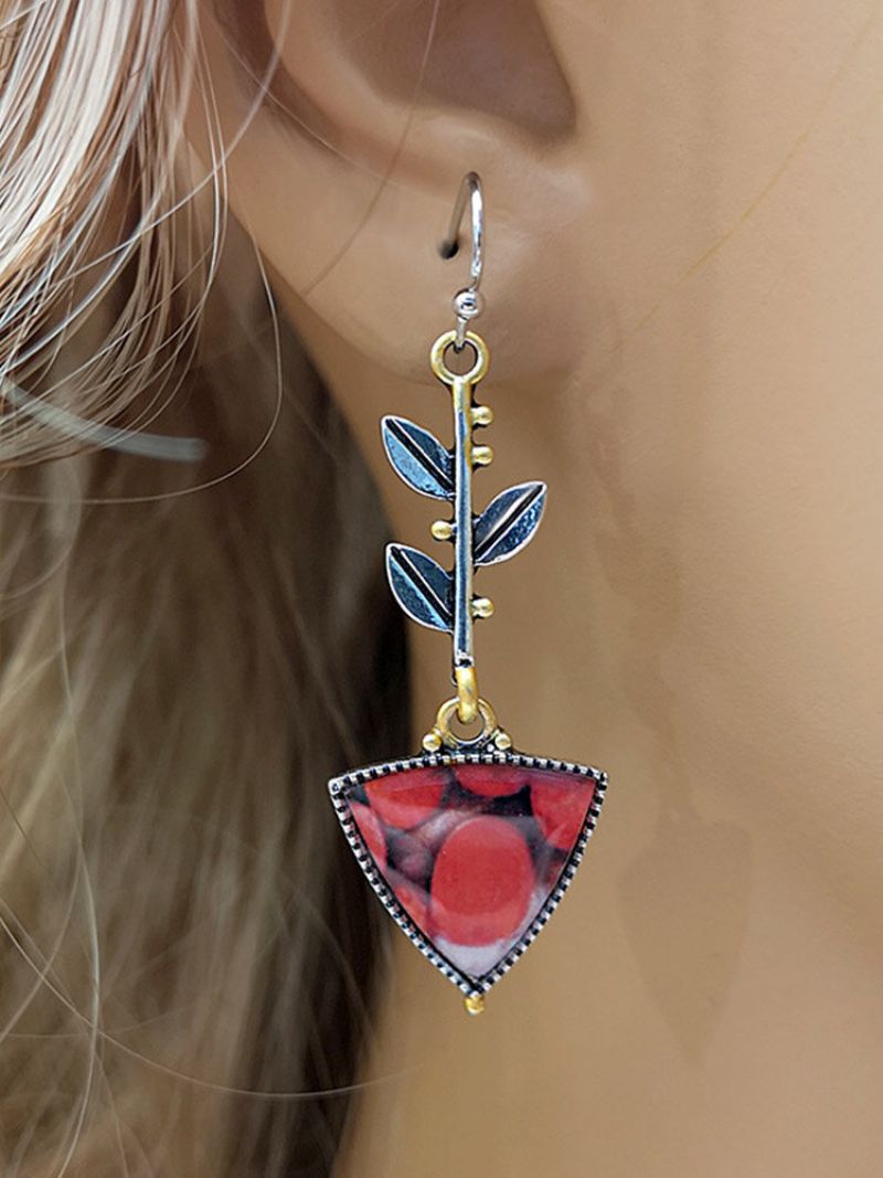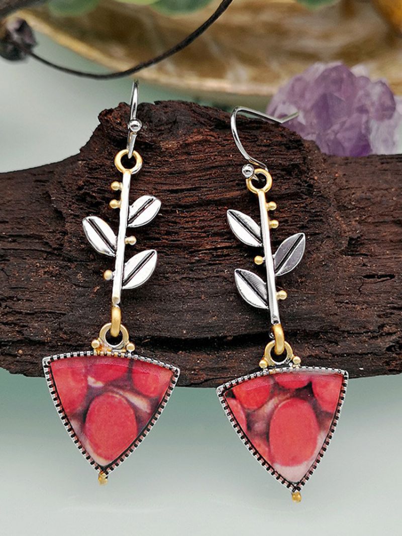 Vintage Blader Trekantet-form Peanut Wood Opal Legering Øredobber