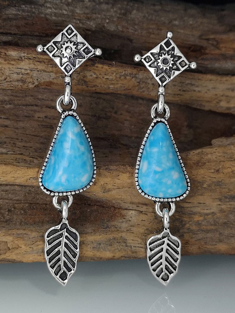Vintage Dråpeformet Bladformede Legering Turkis Øredobber
