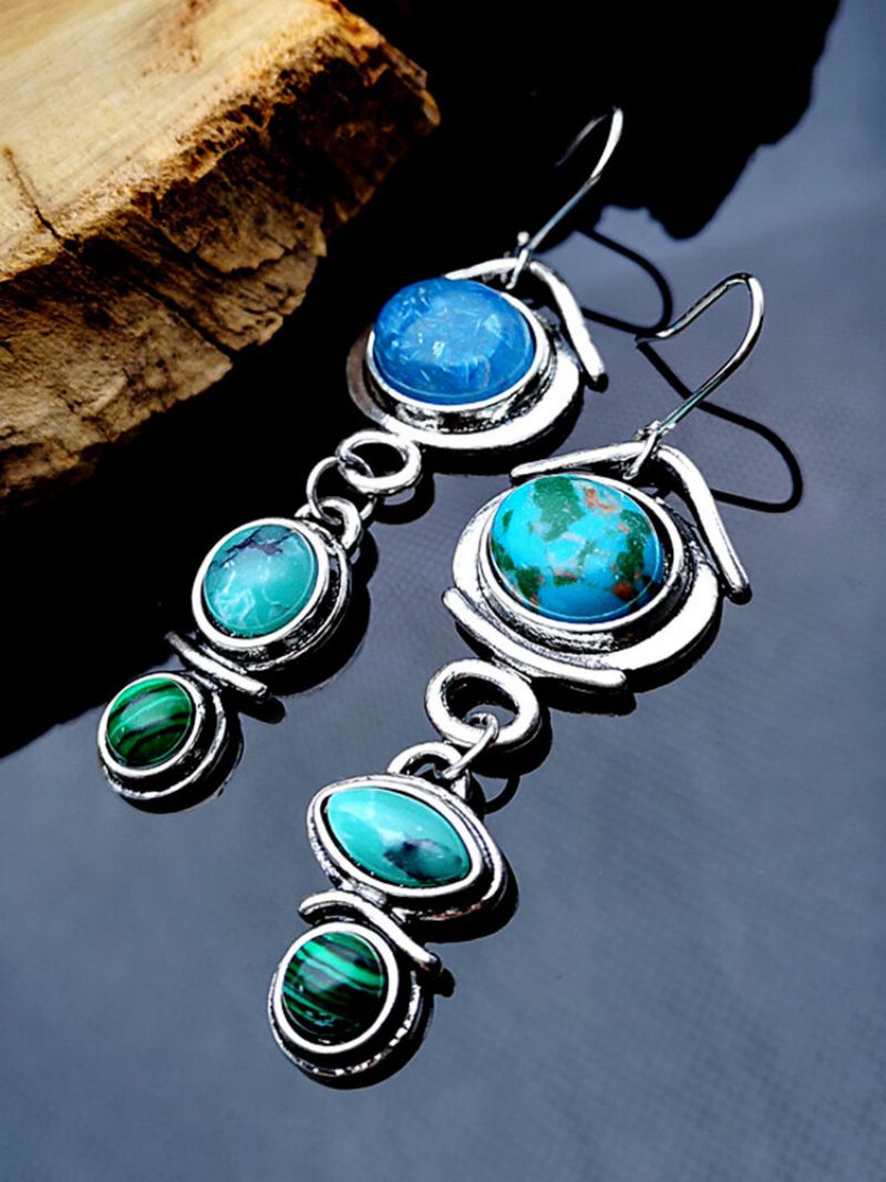 Vintage Drop Shape Kvinner Øredobber Asymmetrisk Turkis Anheng