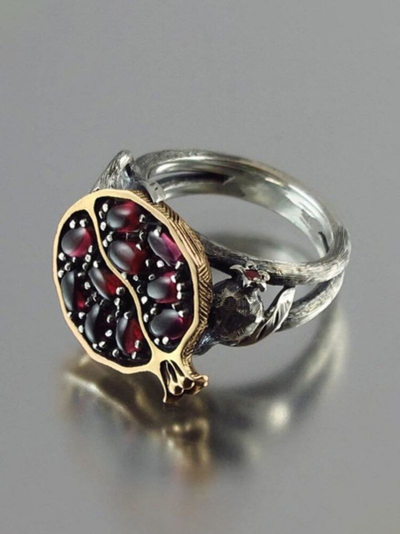 Vintage Granat Tree Vine Ring Farge Separasjon Flower Leaf Kvinner