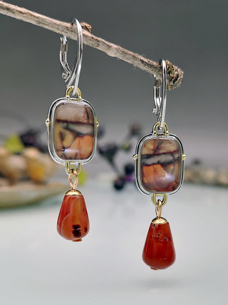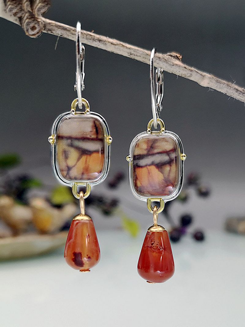 Vintage Stone Jasper Agate Øredobber Dråpeformede Dangle