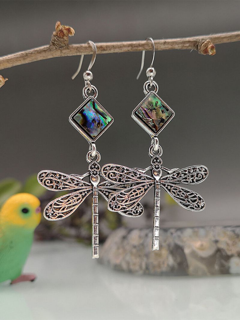 Vintage Trendy Rhombus Abalone Shell Dragonfly-form Legering S925 Øredobber